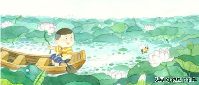 “小娃撑小艇、偷采白莲回、不解藏踪迹、浮萍一道开”出自白居易的《池上》。