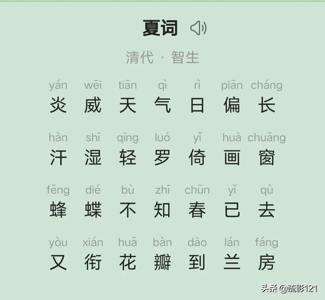 夏词的古诗注音版如下: